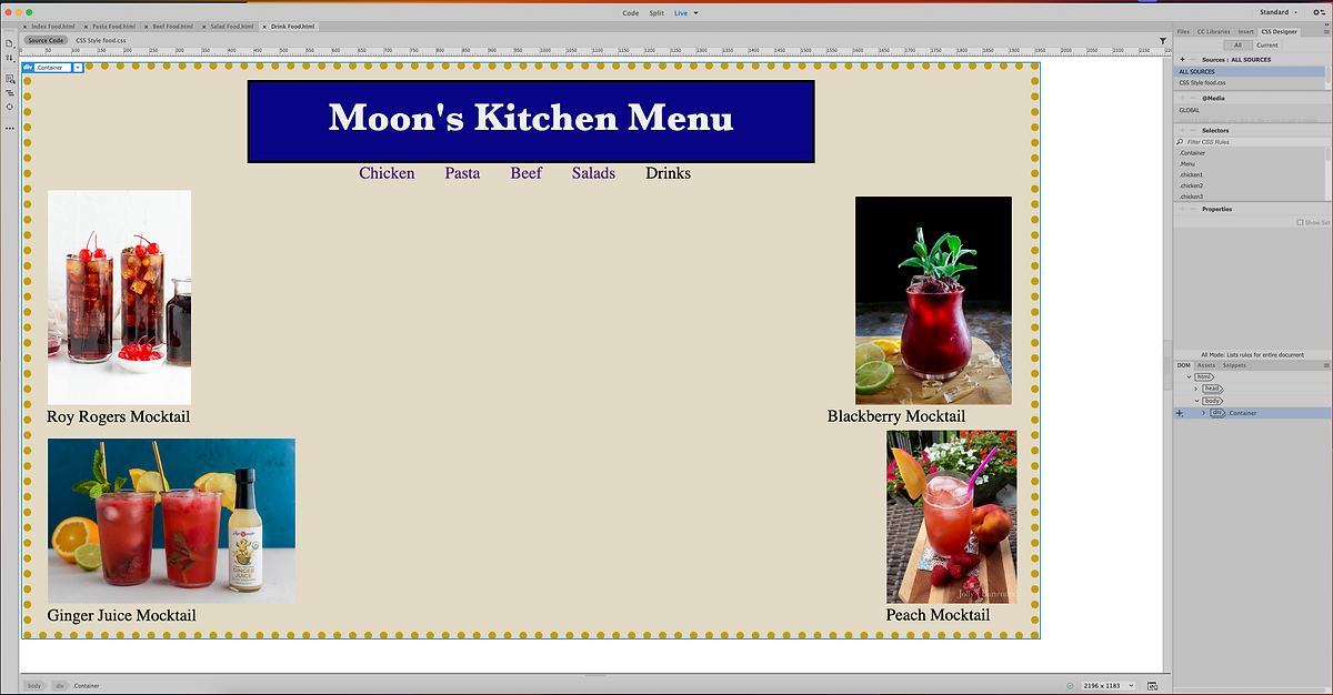 Drinks Page Code